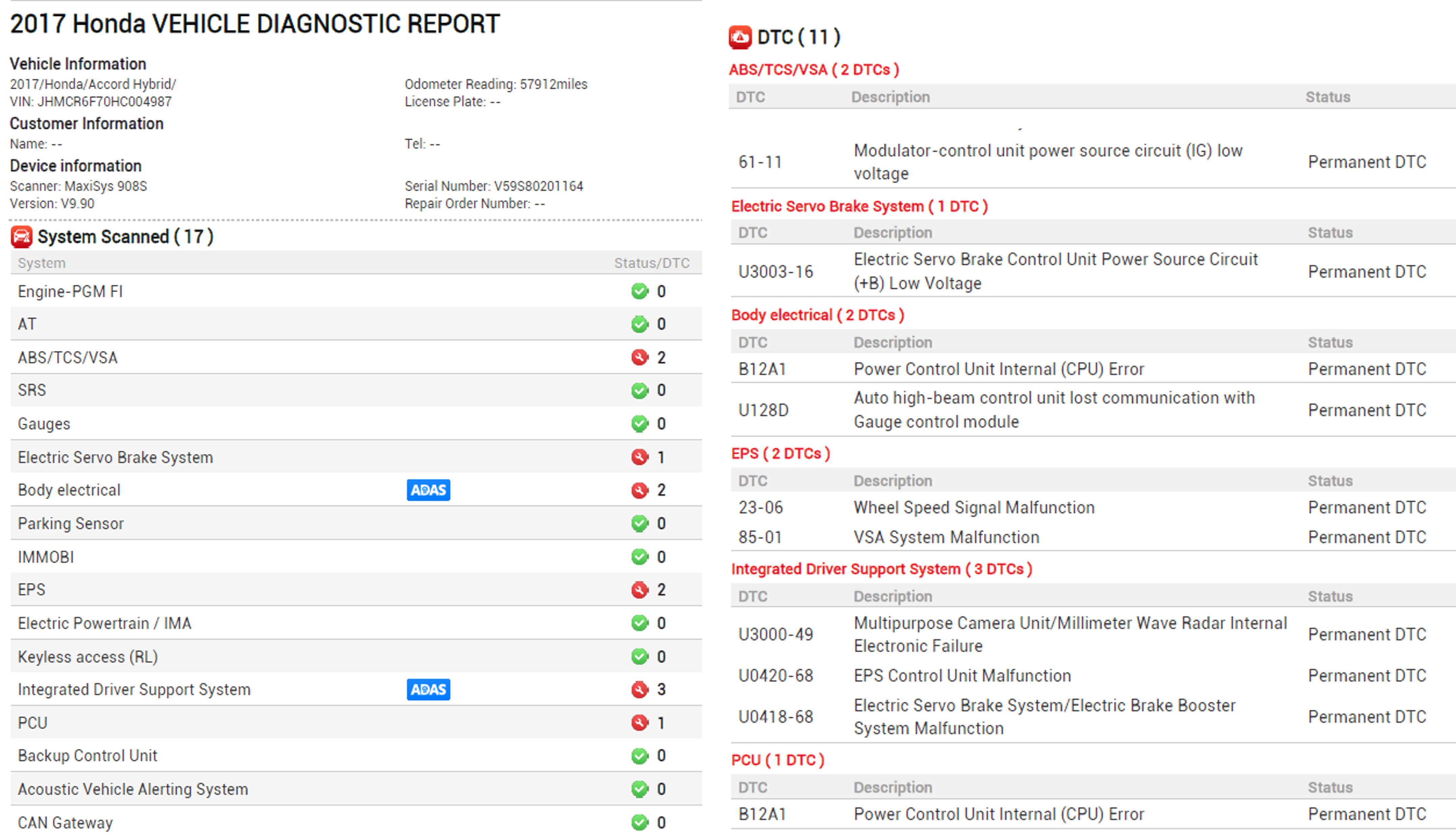 Here are the pre- and post-scan results from an INNOVA 7111 scan tool. This vehicle underwent a pre-scan and had nothing to hide.