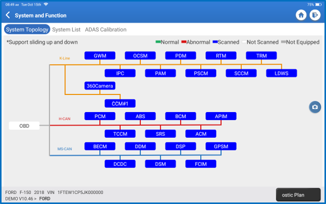 Network Topology Mapping is a graphical layout of the network. It serves a few purposes: it highlights the computers on the network, displays the number of DTCs stored in each computer, and provides quick access to each computer.